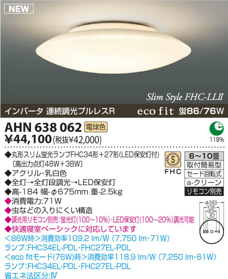 | ランプ | 丸形スリム蛍光ランプFHC34形+27形(LED保安灯付)〔高出力点灯48W+38W〕 |