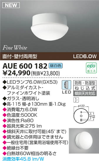 | 補足・注意事項 | ◆消費電力:6.0W ◆色温度:5000K ◆演色性:Ra80 ◆傾斜天井に取付可能(45°まで) ◆調光器との併用はできません ◆一般住宅用(営業用浴場使用不可) ◆絶縁台不要 ◆白熱球60W相当の明るさ |
