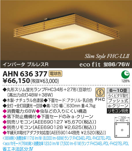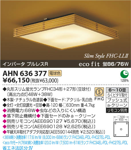 | 補足・注意事項 | ◆消費電力:68.0W ◆虫などの入りにくい構造 ◆落下防止機構付 ◆下面セードのみa-クリーン ◆別売リモコン〔AEE690127 \5,670(税込)〕 ◆別売リモコン〔AEE690128 \2,625(税込)〕 ◆竿縁天井取付アダプタ対応型〔AEE590144別売 \2,520(税込)〕 |