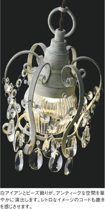 | 部位・材質・色・仕上げ | 本体:鋼・アンティークホワイト塗装 飾:ガラス・透明 |