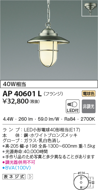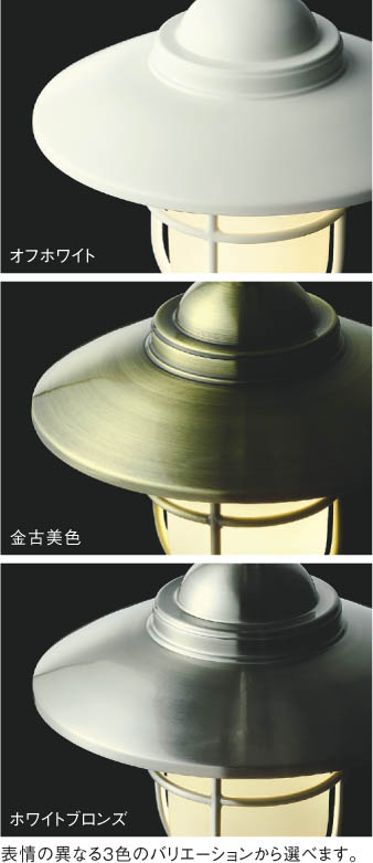 | 部位・材質・色・仕上げ | 本体:鋼・ホワイトブロンズメッキ グローブ:ガラス・乳白色消し |