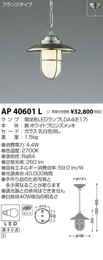 | ランプ | LED小形電球40形相当 |