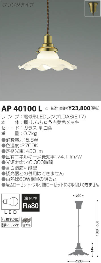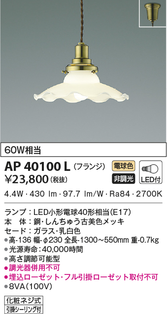 | ランプ | LED小形電球40形相当 |