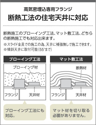 | 補足・注意事項 | ◆消費電力:5.8W ◆光束値:545lm ◆11VA(100V) ◆色温度:2700K ◆演色性:Ra83 ◆光源寿命:40,000時間 ◆高さ調節可能型 ◆コード・キャブタイヤコードφ4 ◆埋込時:埋込穴径φ75mm 埋込必要高77mm ◆埋込時:断熱施工(ブローイング、マット敷工法)・高気密対応型 ◆調光器併用不可 |