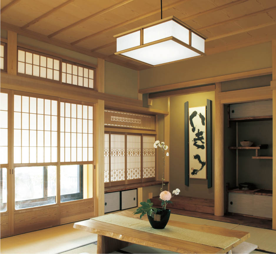 | 部位・材質・色・仕上げ | 枠:白木 セード:アクリル・和紙入 下面セード:アクリル・乳白色 飾:杉柾 |