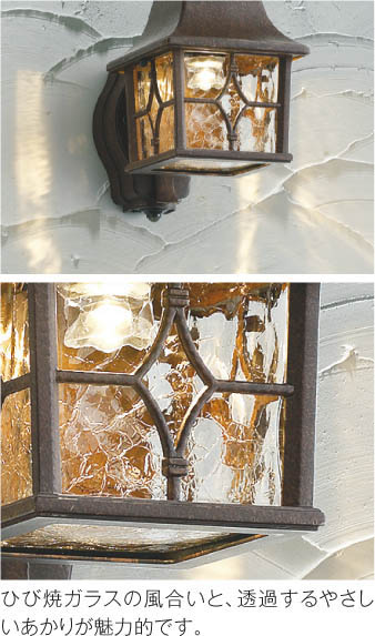 | 部位・材質・色・仕上げ | 本体:アルミダイカスト・アンティーク色塗装 セード:ガラス・透明ひび焼 |