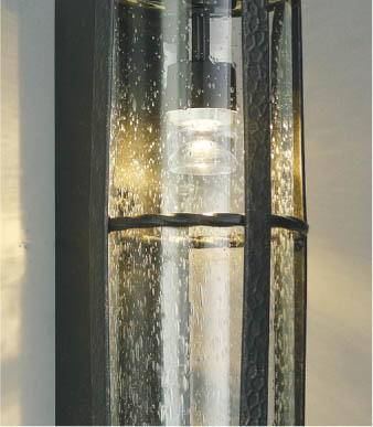 | 部位・材質・色・仕上げ | 本体:アルミダイカスト・黒色塗装アンティーク仕上 セード:ガラス・透明泡入 |
