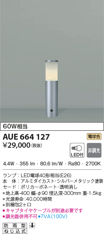 | サイズ | 地上高-400 幅-φ90 埋込深-300mm 重-1.5kg |