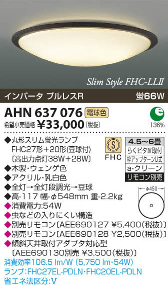 | 補足・注意事項 | ◆消費電力:54.0W ◆虫などの入りにくい構造 ◆別売リモコン〔AEE690127 \(税込)〕 ◆別売リモコン〔AEE690128 \(税込)〕 ◆傾斜天井取付アダプタ対応型〔AEE690130別売 \(税込)〕 |