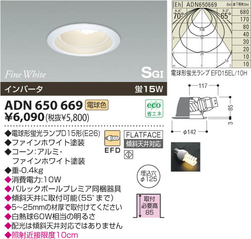 | 補足・注意事項 | ◆消費電力:10.0W ◆パルックボールプレミア同梱器具 ◆傾斜天井に取付可能(55°まで) ◆5~25mmの材厚で取付けてください ◆白熱球60W相当の明るさ ◆配光は傾斜天井対応ではありません ◆照射近接限度10cm |