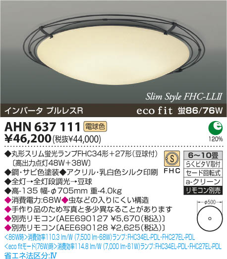 補足・注意事項 | ◆消費電力:68.0W ◆虫などの入りにくい構造 ◆手作り品のため写真と多少異なることがあります ◆別売リモコン〔AEE690127 \5,670(税込)〕 ◆別売リモコン〔AEE690128 \2,625(税込)〕 |