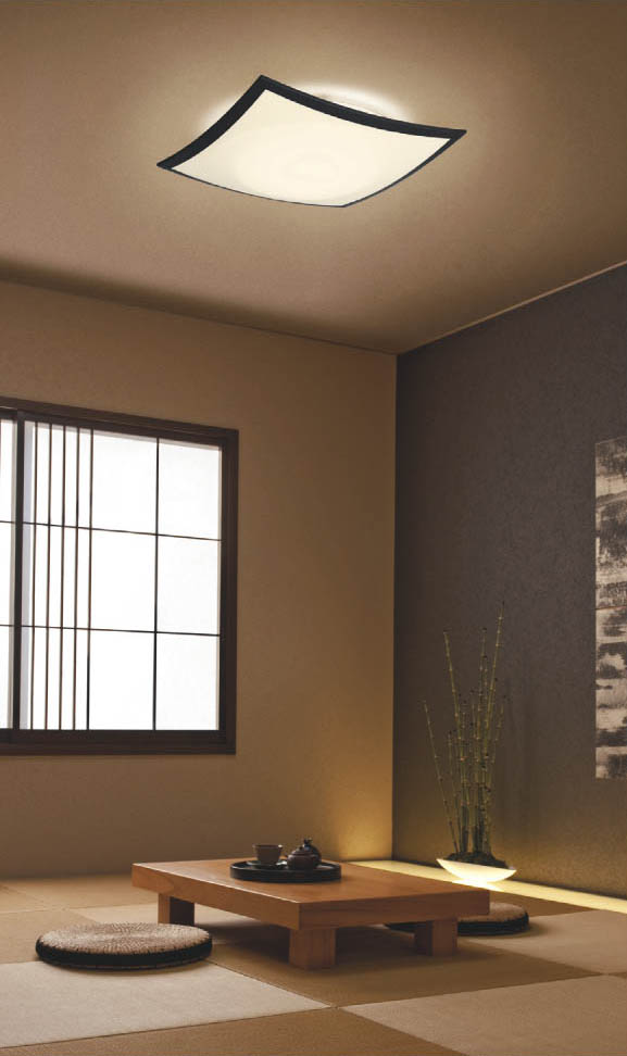 | 部位・材質・色・仕上げ | 上面セード:アクリル・乳白色 下面セード:アクリル・乳白色雲竜和紙模様入 飾:プラスチック・黒色クリアサテン |