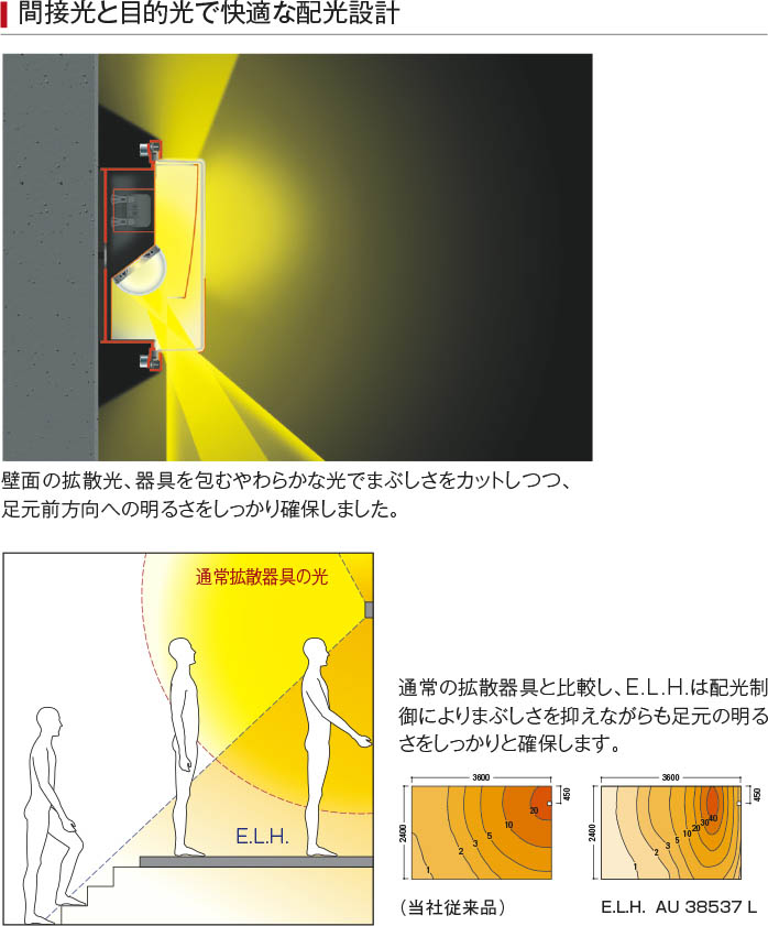 補足・注意事項 | ◆消費電力:8.1W ◆光束値:180lm ◆14VA(100V) ◆色温度:2700K ◆演色性:Ra83 ◆光源寿命:40,000時間 ◆調光範囲(100~約1%) ◆適合調光器別売 |