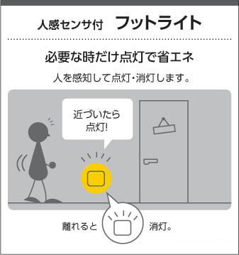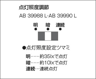| 補足・注意事項 | ◆消費電力:0.8W ◆5VA(100V) ◆色温度:2700K ◆演色性:Ra80 ◆光束維持時間:40,000時間 ◆照度センサ付 ◆点灯照度調節可能 ◆2個用埋込スイッチボックス深型取付専用 ◆調光器併用不可 |