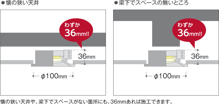 | サイズ | 幅-φ110 出幅-3 埋込穴径-φ100 埋込高-36 取付必要高-36mm 重-0.3kg |