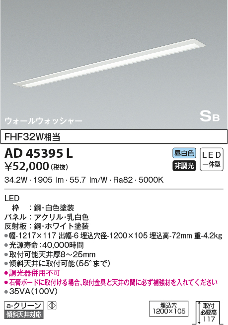 | サイズ | 幅-1217×117 出幅-6 埋込穴径-1200×105 埋込高-72 取付必要高-117mm 重-4.2kg |