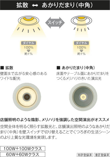 | 点灯順序 | 壁スイッチ:拡散←→中角 |