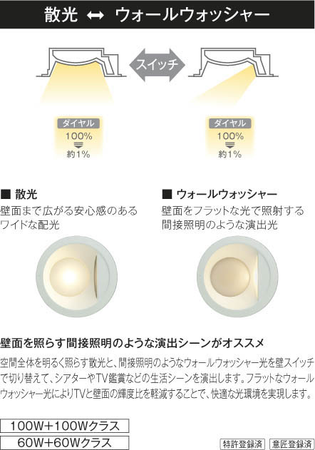 | 点灯順序 | 壁スイッチ:散光←→ウォールウォッシャー |