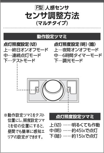 | 補足・注意事項 | ◆消費電力:8.3W ◆光束値:590lm ◆14VA(100V) ◆色温度:2700K ◆演色性:Ra82 ◆光束維持時間:40,000時間 ◆照度センサ付 ◆センサモード切替可能 ◆点灯照度調節可能 ◆調光器併用不可 |