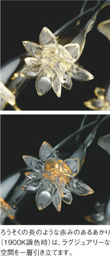 | 部位・材質・色・仕上げ | 本体:鋼・クロムメッキ グローブ:ガラス・透明 下面カバー:ガラス・透明部分消し 飾:ガラス・透明 |