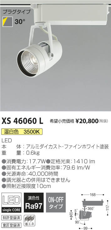 | 補足・注意事項 | ◆消費電力:17.7W ◆色温度:3500K ◆演色性:Ra97 ◆光源寿命:40,000時間 ◆調光器との併用はできません ◆照射近接限度10cm ※色温度:3500K ※HID35W相当 |