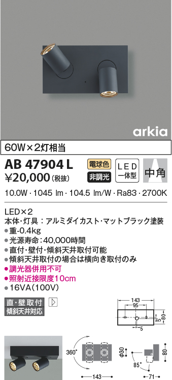 部位・材質・色・仕上げ 本体・灯具:アルミダイカスト・マットブラック塗装
