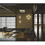 | 部位・材質・色・仕上げ | 枠:木製・ブラウンオイルステイン セード:強化和紙・網目柄 下面セード:アクリル・乳白色 |