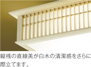| 部位・材質・色・仕上げ | 枠:白木 セード:アクリル・乳白色 |