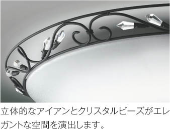 | 部位・材質・色・仕上げ | セード:アクリル・乳白色シルク印刷 飾:鋼・黒色塗装 ガラス・透明 |