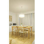 | 部位・材質・色・仕上げ | セード:布・白色 下面セード:アクリル・乳白色 飾:木製・ナチュラルウッド色 |