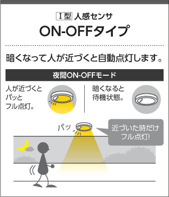 | 補足・注意事項 | ◆消費電力:6.2W ◆光束値:400lm ◆15VA(100V) ◆色温度:2700K ◆演色性:Ra82 ◆光束維持時間:40,000時間 ◆センサモード切替可能 ◆点灯照度調節可能 ◆照射近接限度10cm ◆調光器併用不可 |
