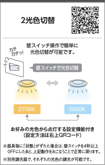 | 点灯順序 | 壁スイッチ:2700K→5000K |