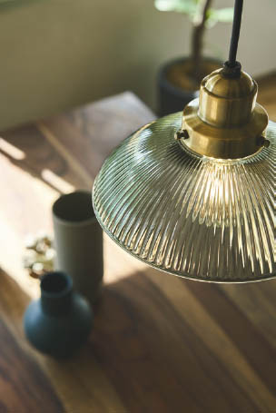 | 部位・材質・色・仕上げ | 本体:鋼・しんちゅう古美色メッキヘアライン セード:ガラス・グリーンリブ入 |