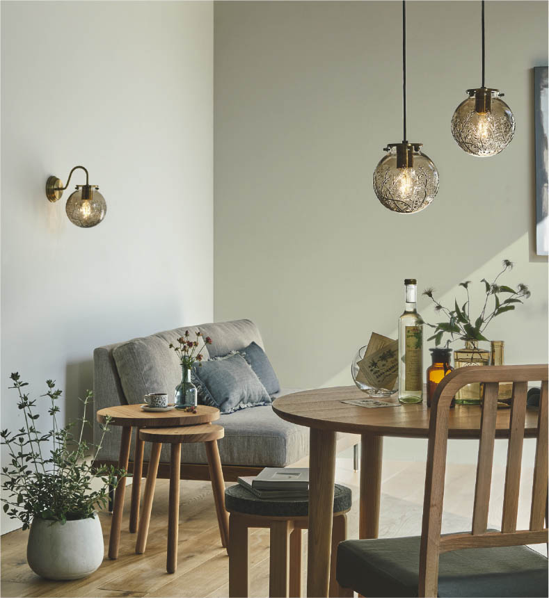 | 部位・材質・色・仕上げ | 本体:鋼・しんちゅう古美色メッキヘアライン セード:ガラス・スモークブラウン |
