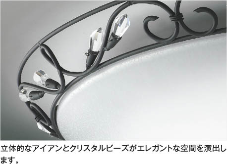 | 部位・材質・色・仕上げ | セード:再生アクリル樹脂・乳白色シルク印刷スカボ風 飾:鋼・黒色塗装 飾:ガラス・透明 |