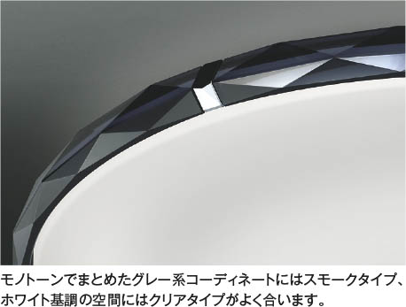 | 部位・材質・色・仕上げ | 枠:アクリル・スモーク セード:再生アクリル樹脂・乳白色 飾:プラスチック・クロムメッキ |
