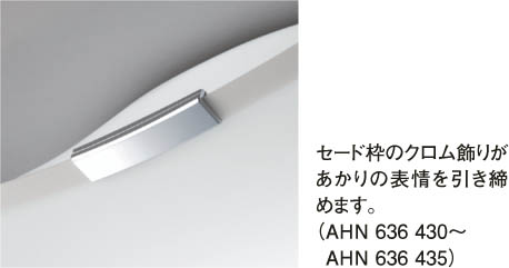 | 部位・材質・色・仕上げ | 上面セード:アクリル・乳白色 下面セード:アクリル・乳白色シルク印刷 飾:プラスチック・クロムメッキ |